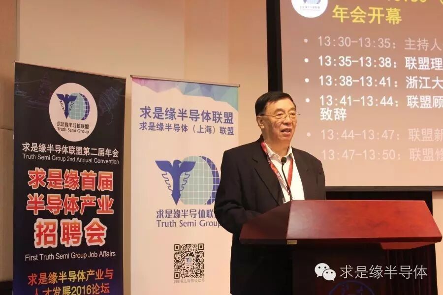 2016年11月12日-13日,求是缘半导体联盟第二届年会,暨求是缘半导体产业和人才发展2016论坛、求是缘首届半导体产业招聘会,和求是缘半导体(上海)联盟第二届年会在浙江大学玉泉校区邵逸夫科学技术馆成功举办。本次年会由求是缘半导体联盟、浙江大学信息与电子工程学院、浙江大学微电子学院和求是缘半导体(上海)联盟联合共同举办。年会上有近300名来自海内外的联盟会员、半导体产业生态链各界代表、专家、浙江大学及其他高校在校师生参加。